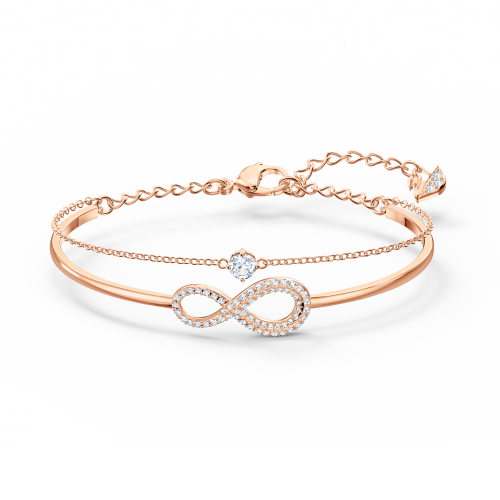 Eleve cualquier atuendo con este brazalete con baño de oro rosa de nuestra popular línea Ginger, que incorpora un disco de cristal pavé con el brillo clásico de Swarovski. Glamour atemporal. Puede combinarse con un reloj de Swarovski para invocar un look de superposiciones de tendencia.